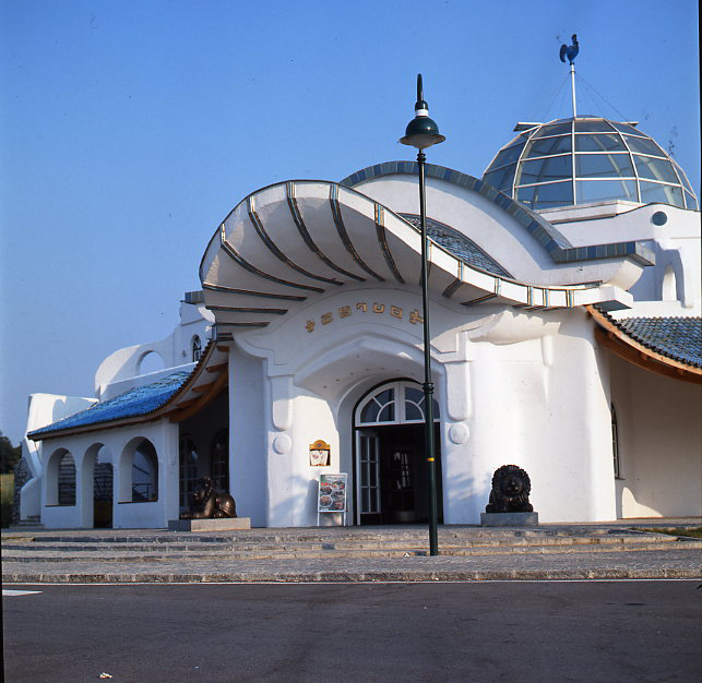 Viele Reliefs kommen an die Wände, Figuren aus Keramiken und seine großen Skulpturen werden außen und innen aufgestellt. Er gestaltet für das Hotel auch besondere Badezimmerfliesen. Der ausführende Architekt ist Peter Pelikan.